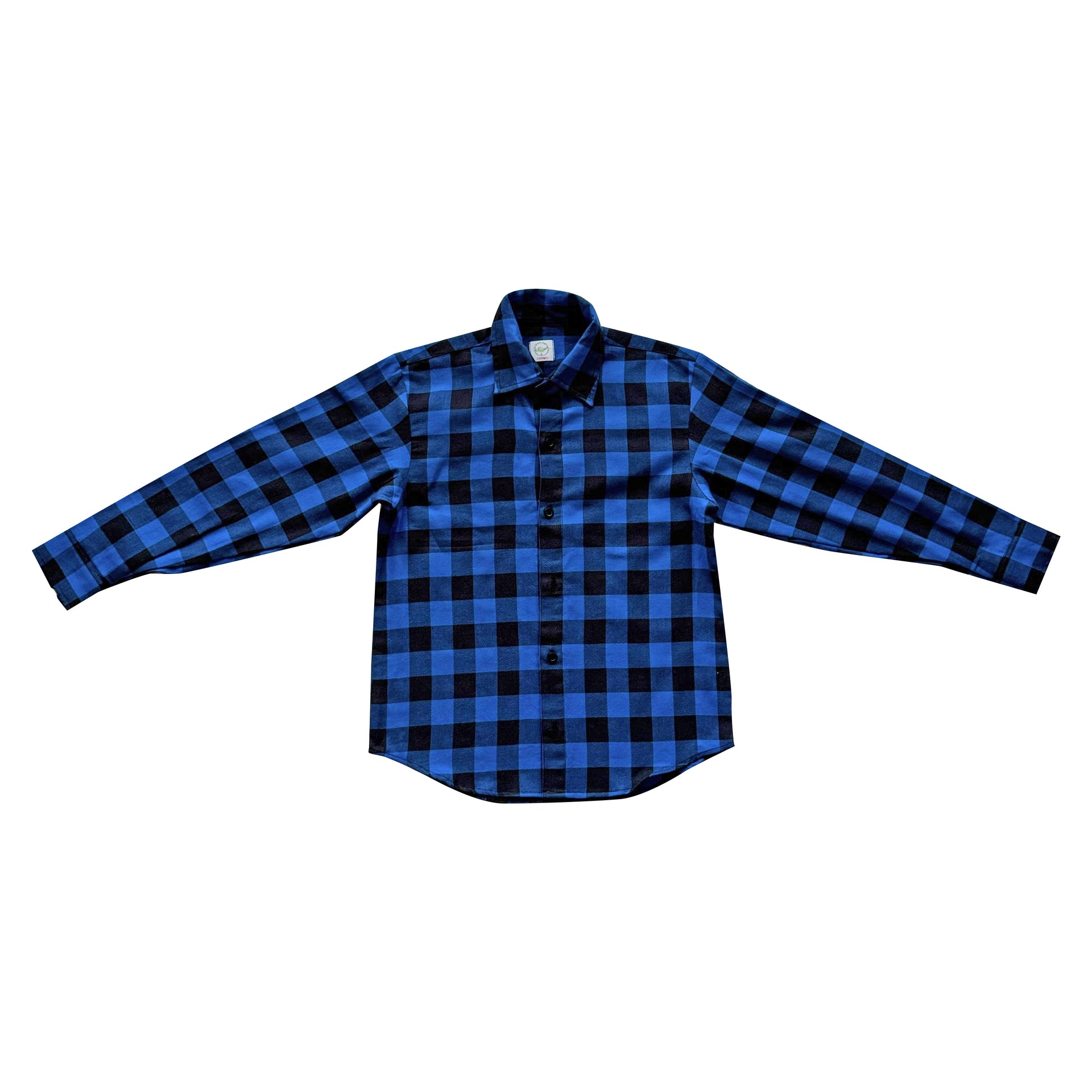 The *Black and Blue Plaid Classic Boys Shirt* is a timeless and stylish wardrobe staple. Featuring a classic plaid pattern in bold black and blue hues, this shirt is made with a comfortable, breathable fabric. It has a collared neckline and long sleeves, making it versatile enough for both casual and slightly dressier occasions. Whether paired with jeans for a laid-back look or dressed up with trousers for a special event, this shirt adds a touch of classic charm to any outfit.